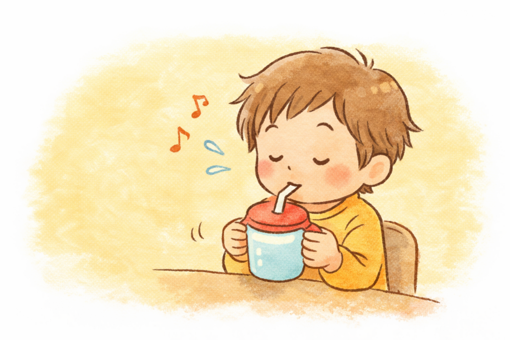 | 飲み物の出方が分からない | 吸っても飲めない様子 | 紙パックなどで吸う感覚を覚える |